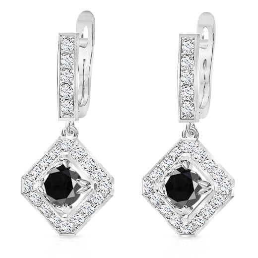עגילי יהלומים מרובעים- אבן חן מרכזית