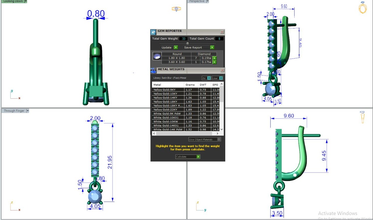 עגילי יהלומים תלויים לאישה- אבן חן מרכזית.