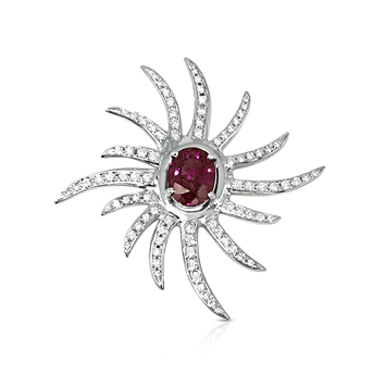 תליון מעצבים דגם קרני שמש עם יהלומים יהלום מרכזי 2 קארט