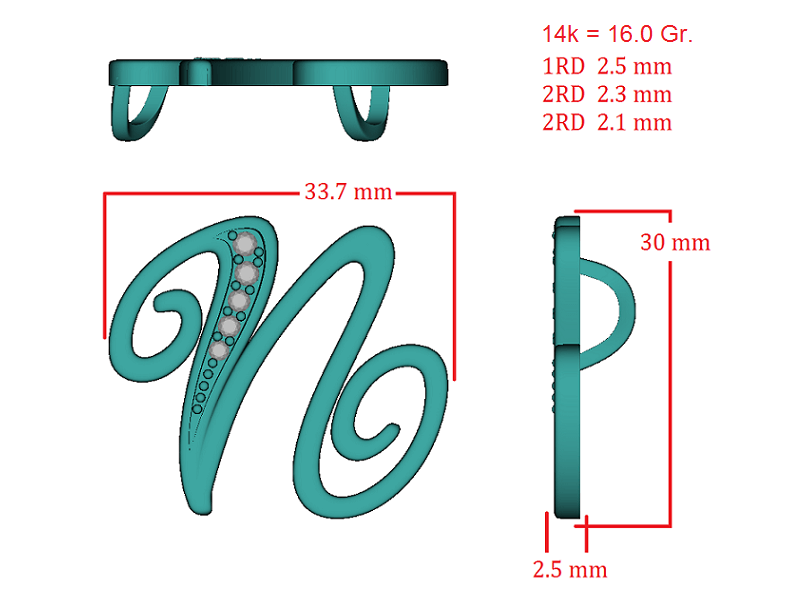 תליון שם אות משובץ יהלומים