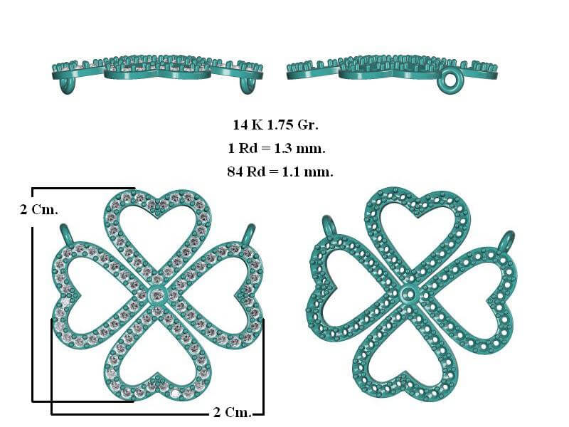 תליון תלתן זהב ויהלומים