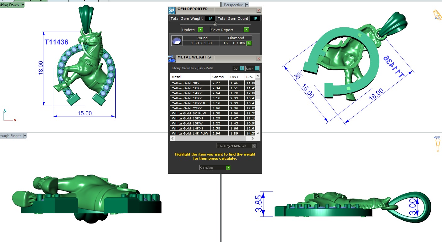 תליון זהב יהלומים בצורת פרסה עם סוס