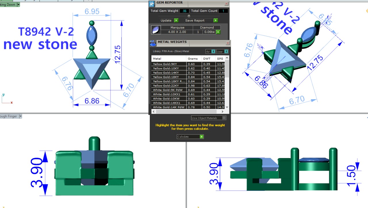 משובץ יהלום בחיתוך משולש ומרקיזה