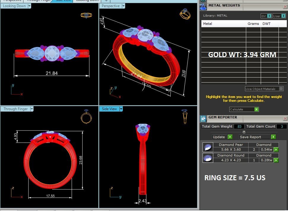 טבעת אירוסין טריפל מעוצבת לאישה- יהלומים חיתוך paer