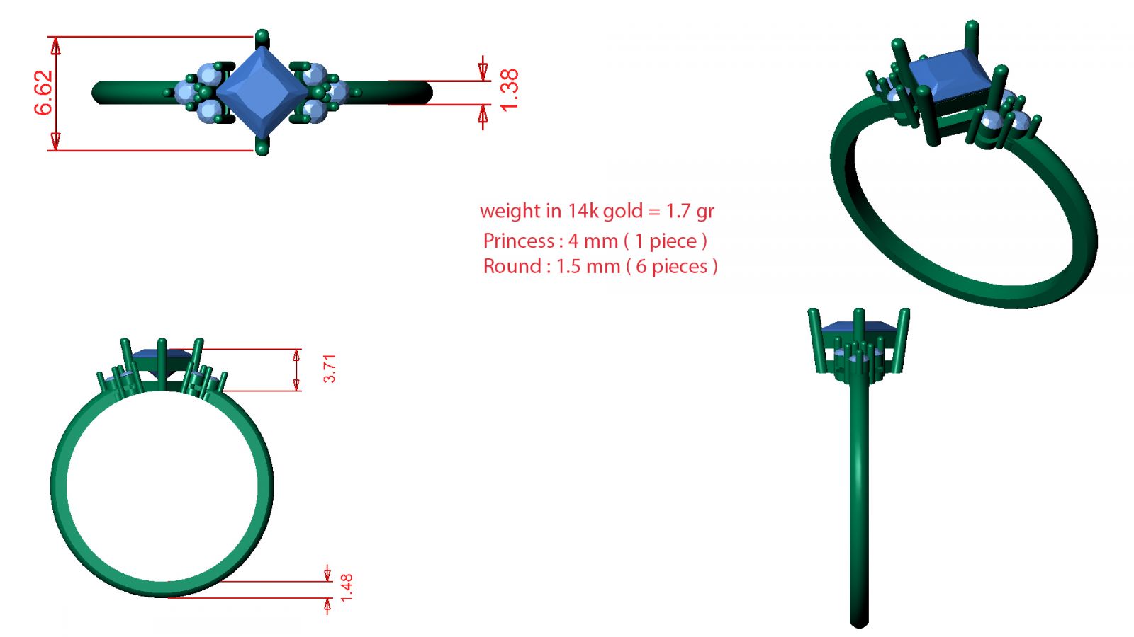 Princess 1 x 4.0x4.0 mm.