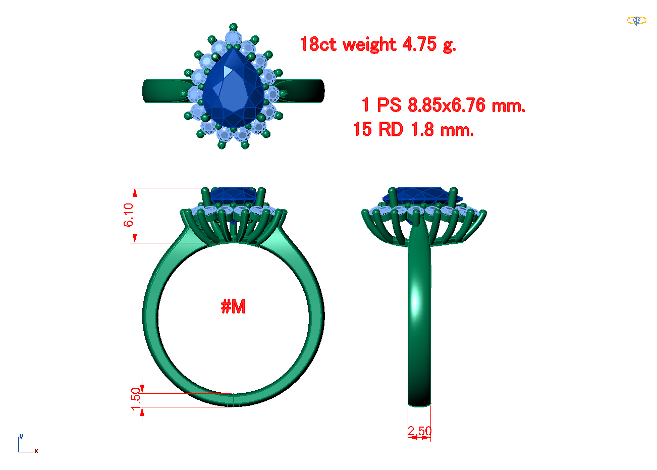 טבעת דיאנה אבן חן טיפה ספיר אמרלד או ברקת