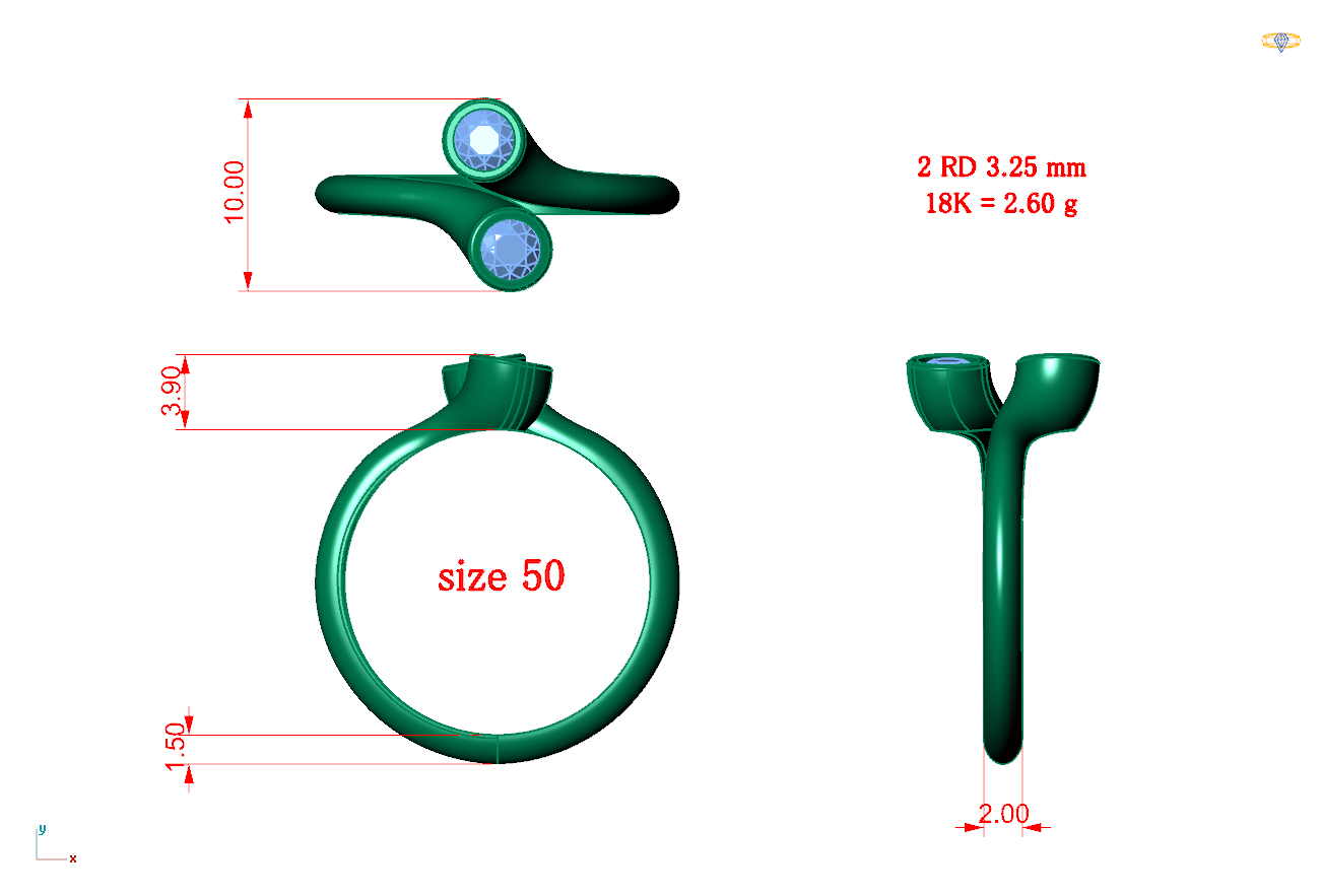 טבעת מעצב מיוחד עם ראש מפוצל 2 יהלומים 0.30 קראט - "MERCURY"
