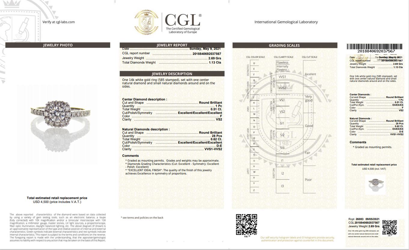 יהלום טבעי 0.51 קארט מרכזי +0.62 יהלומים מסביב
