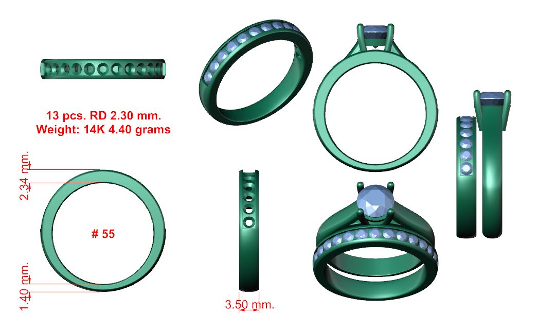 ניתן להתאים את מאפייני היהלום המרכזי המשובץ ביהלום בצורות שונות בגודל שונה ובאיכות צבע וניקיון שונים וזאת בהתאם לתקציב. ניתן לייצר את התכשיט בזהב צהוב אדום ולבן. ניתן לרכוש את האבן המרכזית ביהלום צבעוני או אבני חן. ניתן לרכוש את התכשיט עם יהלומים לבנים או צבעונים או אבני חן בצדדים. לנוחיותך אפשר לבחור את היהלומים ולבנות את הטבעת תחת קטגוריה יהלומים.
