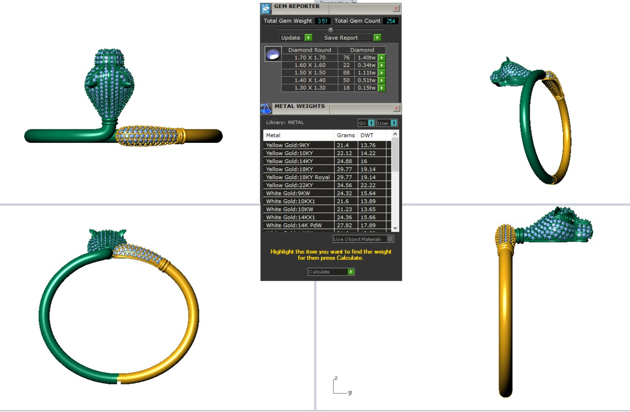 צמיד זהב בעיצוב נמר משובץ יהלומים