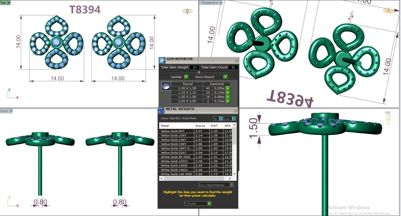 עגילי תלתן יוקרתיים בשילוב זהב ויהלומים