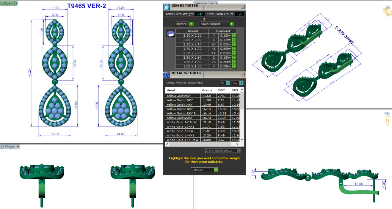 עגילים תלויים ארוכים בשיבוץ יהלומים בעיצוב יוקרתי