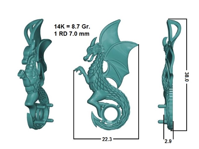 בית > Jewelry > Necklaces > תליון בעיצוב דרקון משובץ אבן חן