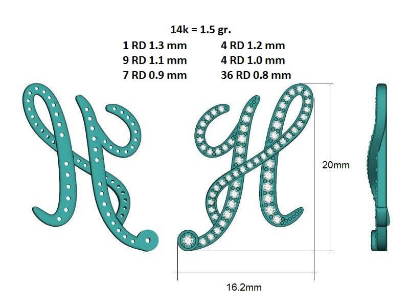 בית > Jewelry > Necklaces > תליון אות H ביהלומים שחורים