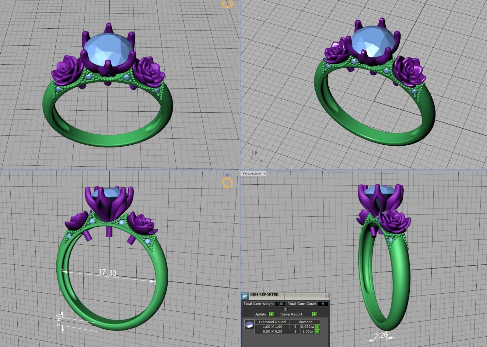טבעת פרחים משובצת יהלומים- יהלום מרכזי 3/4 קראט