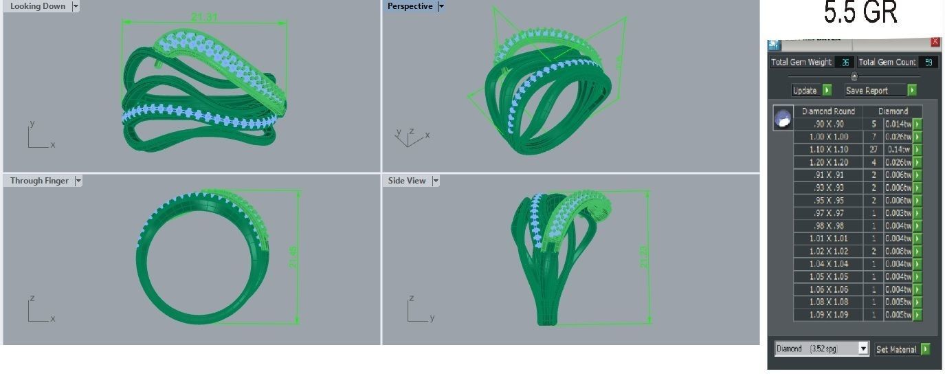 טבעת זהב בסגנון גלים בעיצוב אישי בשיבוץ יהלומים נדירים