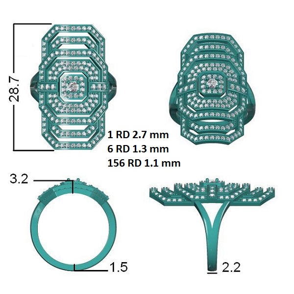 טבעת זהב וינטז גדולה משובצת יהלומים