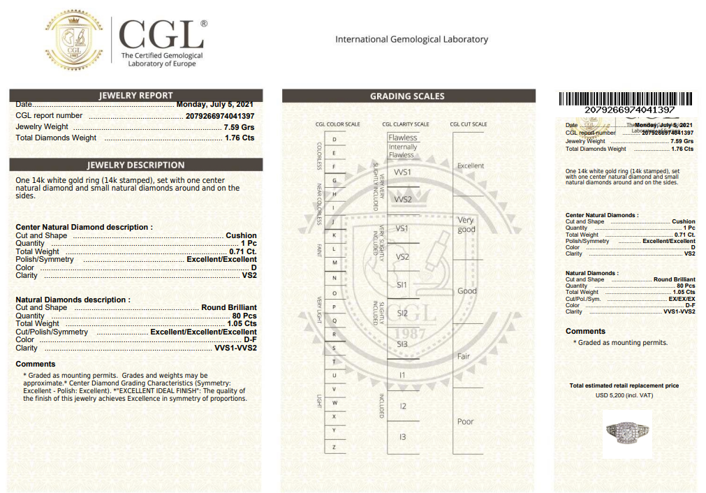 • תעודה גמולוגית והערכת שווי