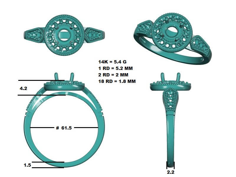 טבעת אירוסין הולו בעיצוב וינטג'- 30 נקודות יהלום מרכזי