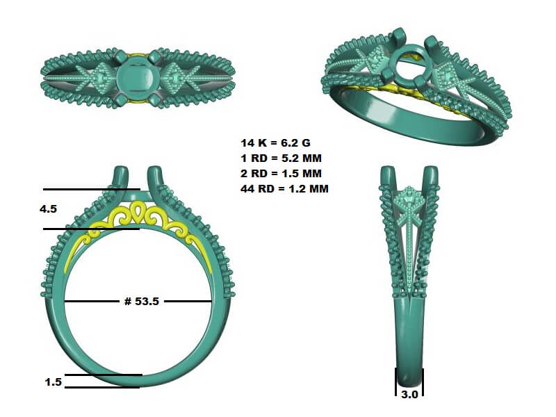 יהלום מרכזי  5.2 ממ