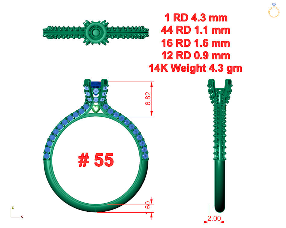 ניתן להתאים את מאפייני היהלום המרכזי המשובץ ביהלום בצורות שונות בגודל שונה ובאיכות צבע וניקיון שונים וזאת בהתאם לתקציב. ניתן לייצר את התכשיט בזהב צהוב אדום ולבן. ניתן לרכוש את האבן המרכזית ביהלום צבעוני או אבני חן. ניתן לרכוש את התכשיט עם יהלומים לבנים או צבעונים או אבני חן בצדדים. לנוחיותך אפשר לבחור את היהלומים ולבנות את הטבעת תחת קטגוריה יהלומים.