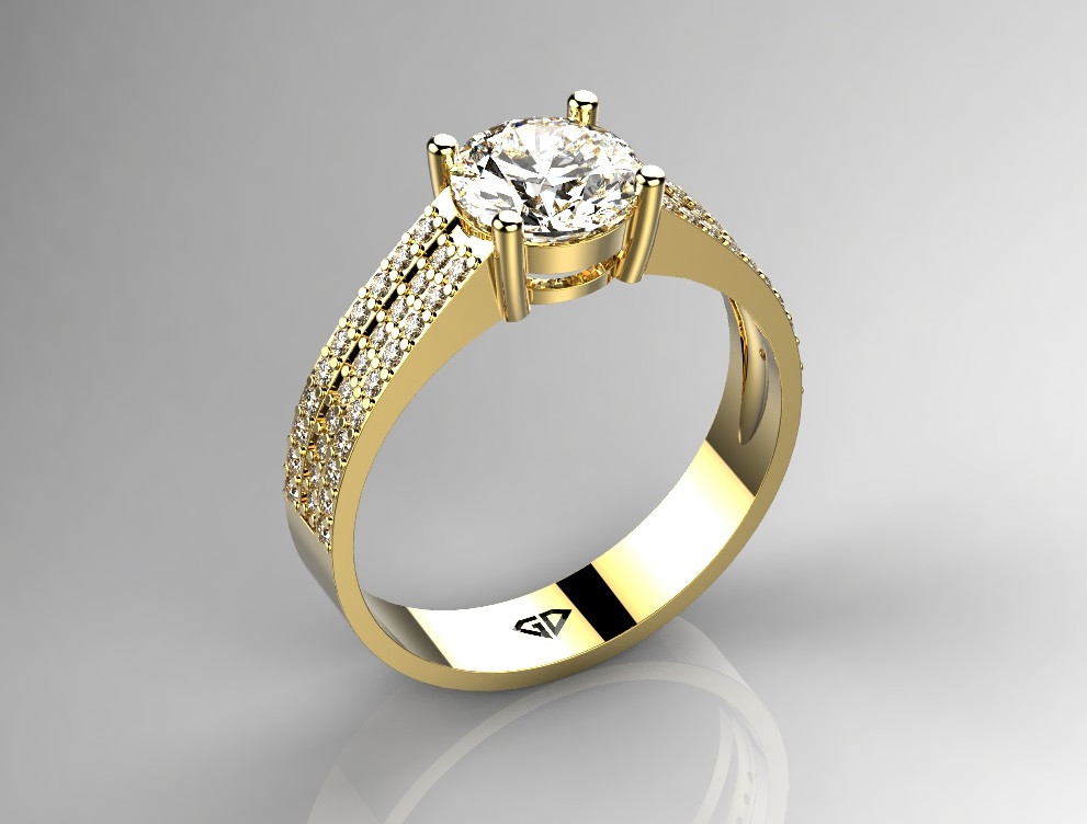 טבעת אבן חן יוקרתית 1 קארט עם 3 שורות יהלומים בצדדים