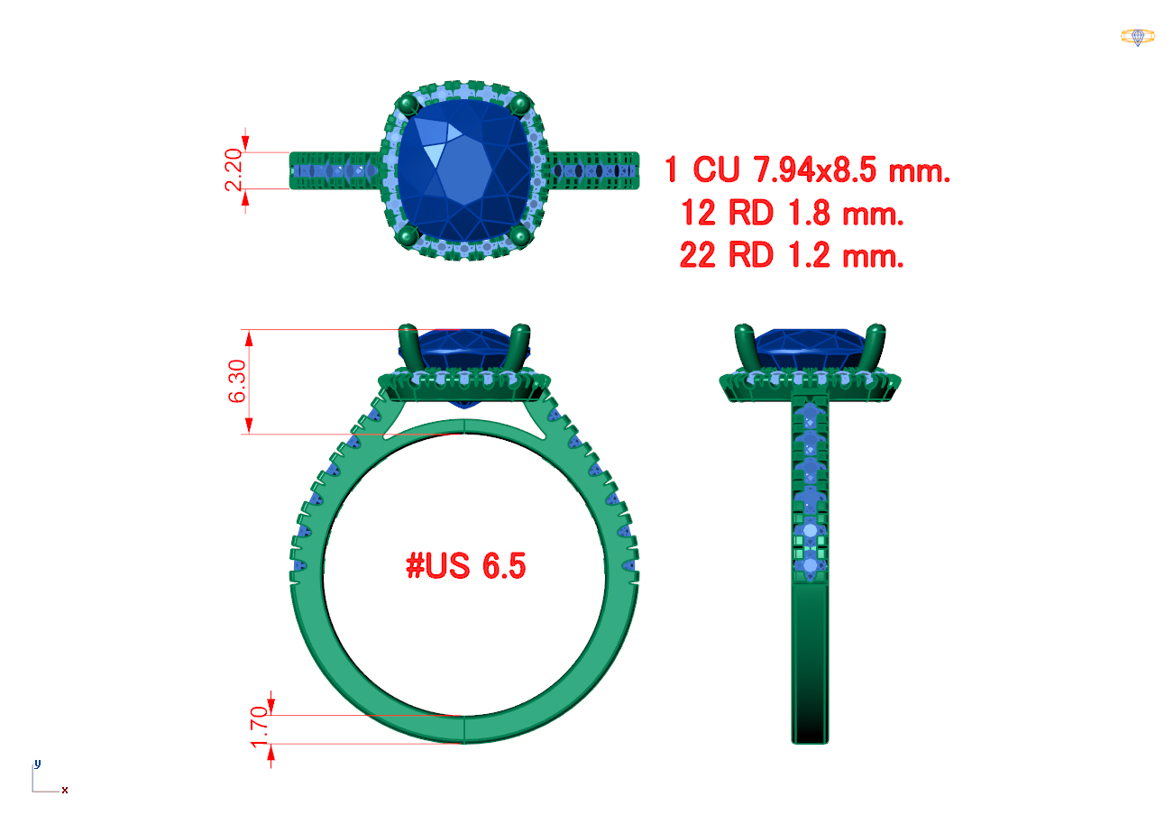 יהלום מרכזי מרובע קושן או ראדיאן או אמרלד