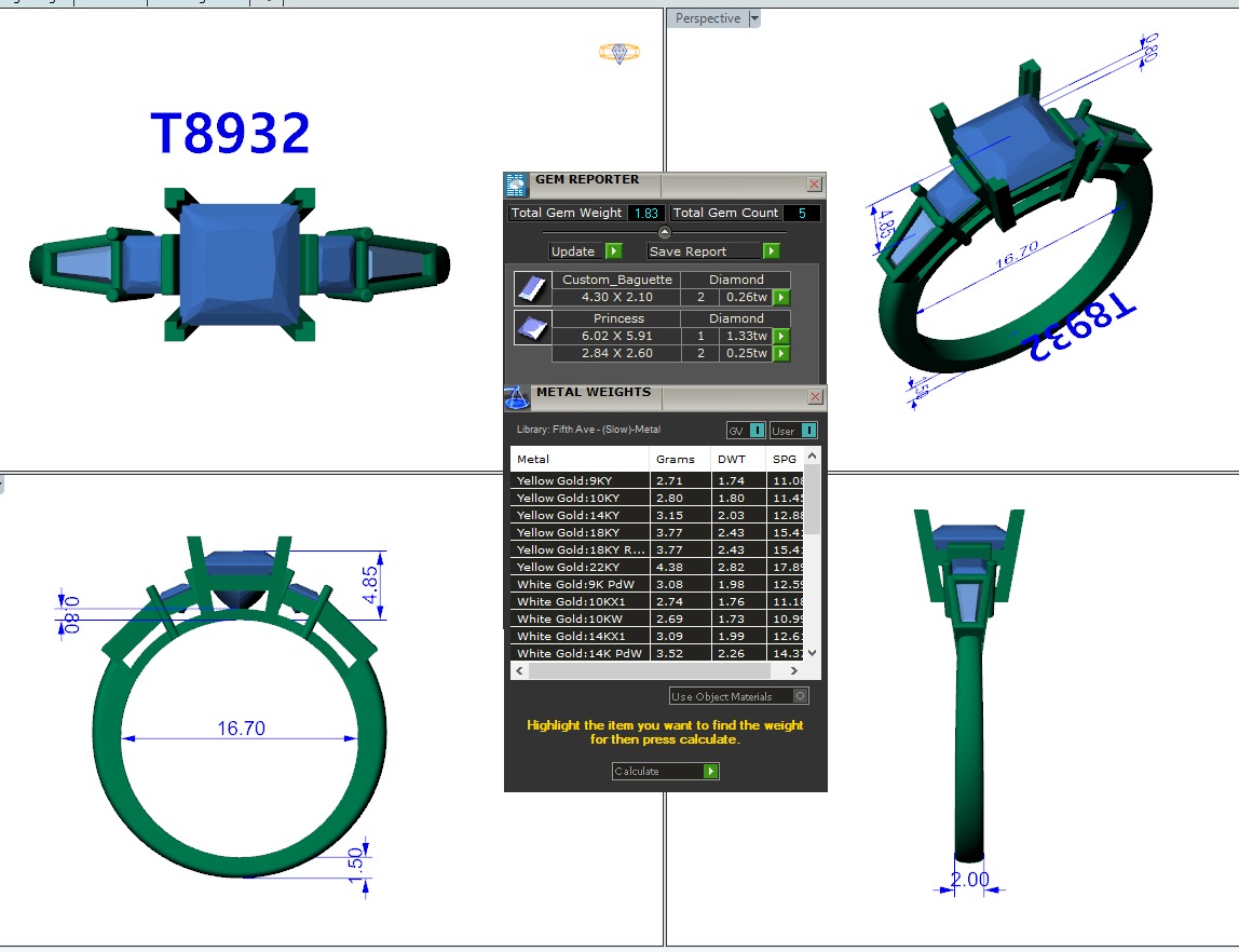 פרטים נוספים:יהלום פרינסס מרכזי + 2 יהלומי פרינסס צדדים + 2 יהלומים בגטים