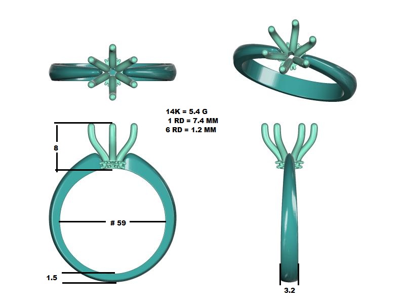 יהלום מרכזי 7.4 ממ