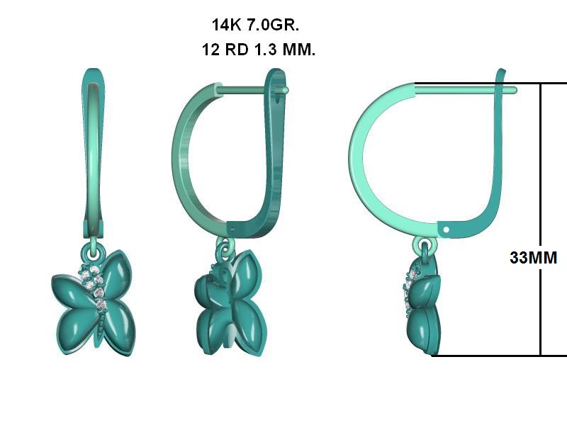 בית > Jewelry > Earrings > עגיל זהב ויהלומים בעיצוב פרפר