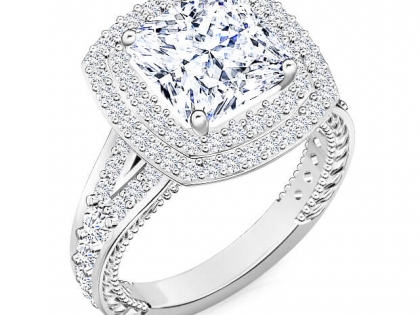 טבעת אירוסין זהב לבן הולו 3/4 קראט